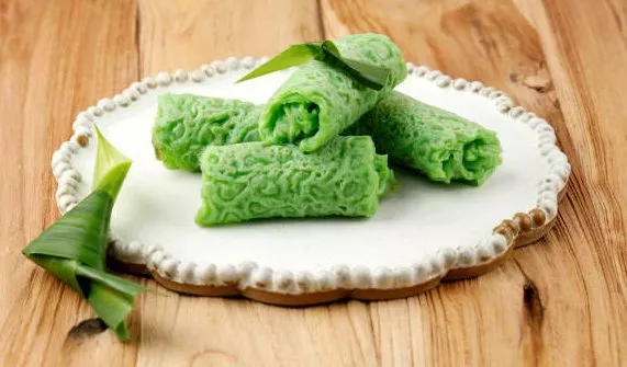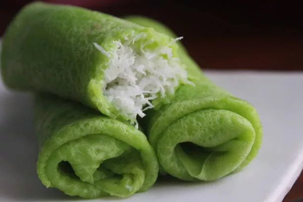 Les Dadar Gulung, venant tout droit du Bali, sont des petites crêpes de couleur verte roulées avec une farce de noix de coco râpée et de sucre de palme.