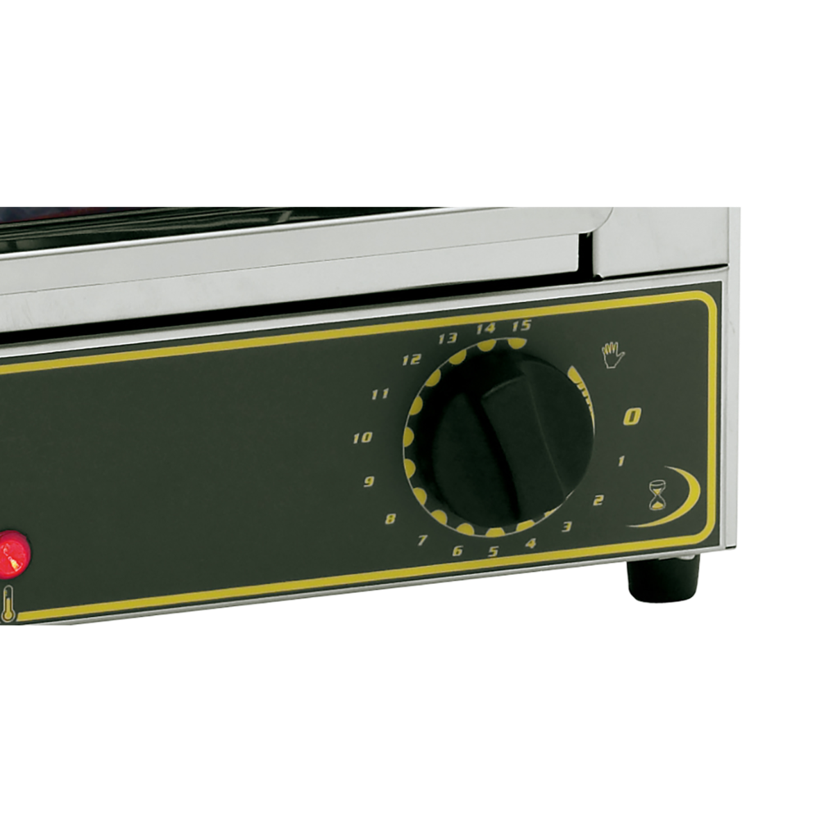 The infrared toaster BAR 2000 is equipped with 3 ramps of 2 infrared quartz tubes. This double electric toaster can cook without preheating, without smoke or smell, any type of snacks. The infrared quartz spread a harmless radiation of 1050 ° C on the products to be cooked. They ensure a fast and thorough cooking at core of the products.