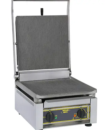 With a robust construction, this cast-iron contact grill is ideally suited for intensive use. Its cast iron plates have a high power of thermic inertia: after 15 minutes of preheating, the plates restore heat and can be used continuously on a daily basis.