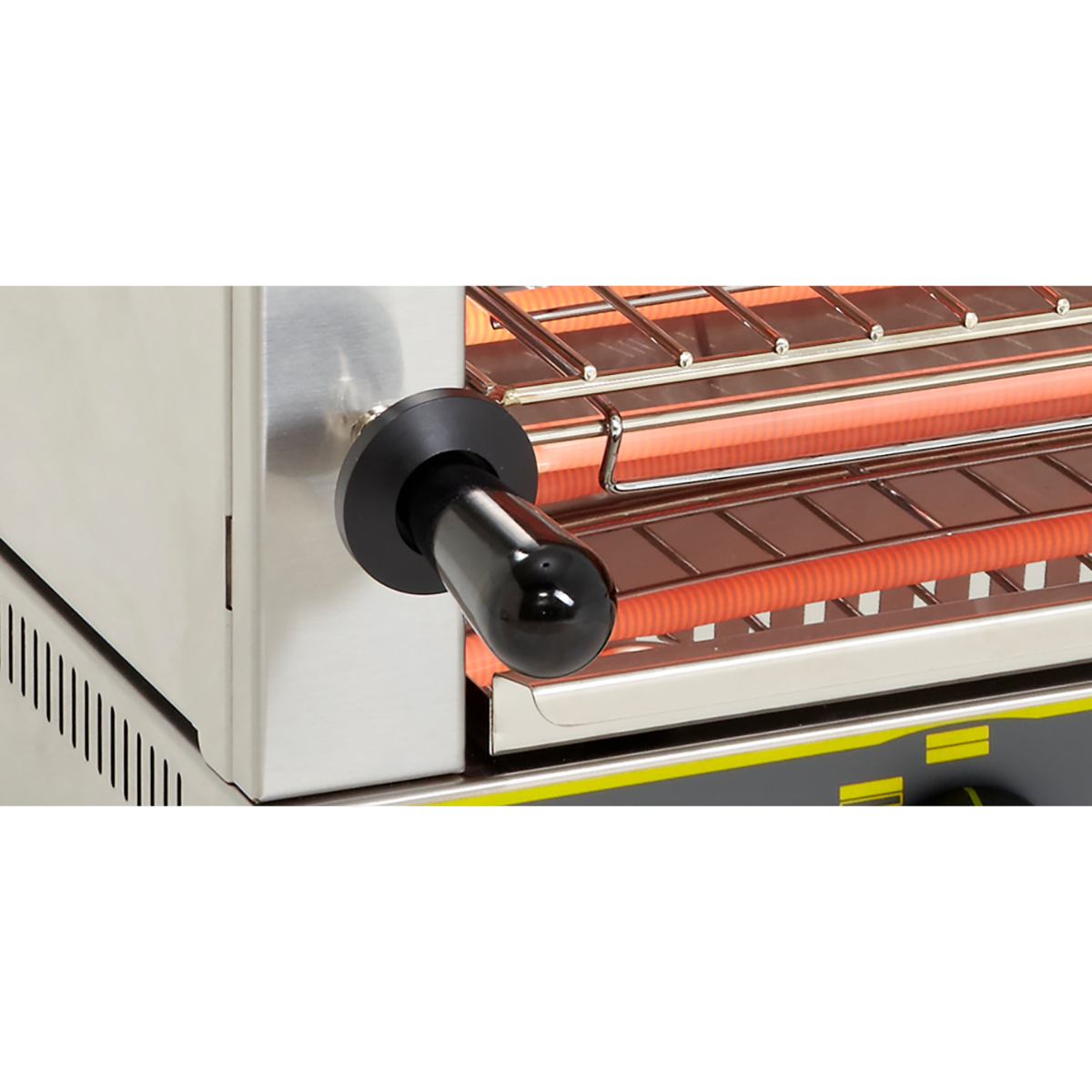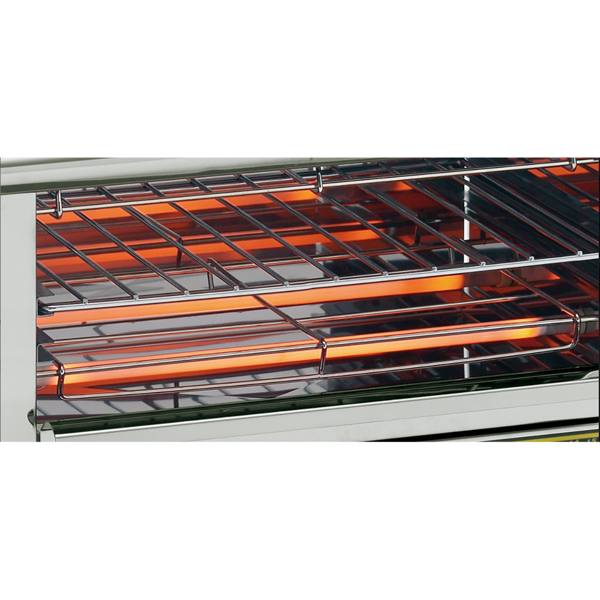 The infrared quartz tubes of this stainless steel toaster are protected by a patented protection grid.