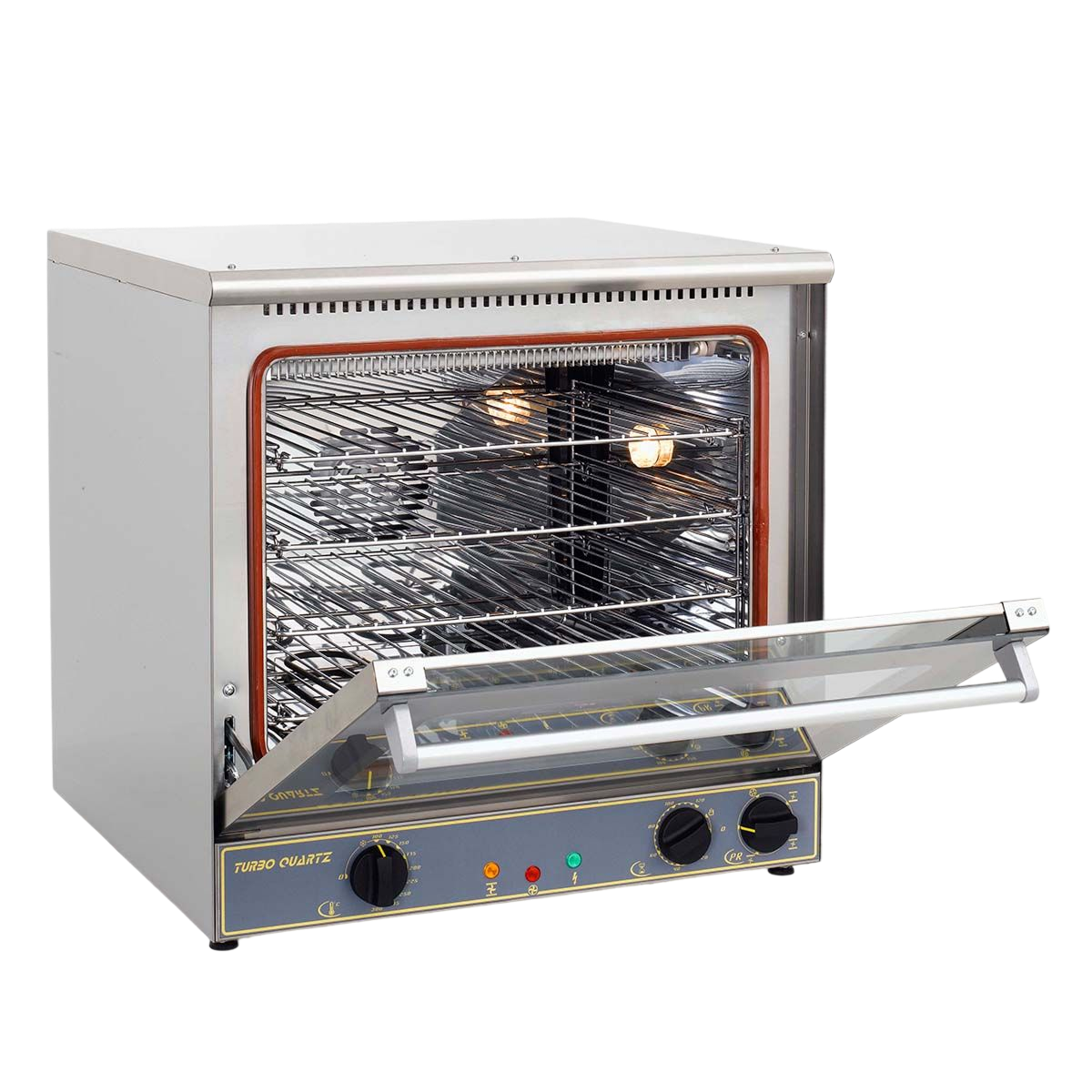 – The “Turbo Quartz®” function increases the inside temperature by 30 ° C, saving 30% of the cooking time! Turbo Quartz® is a technology developed exclusively by Roller Grill. At the same time, it combines and regulates infrared quartz tubes in the upper part and the bottom heating element, with the ventilation system.