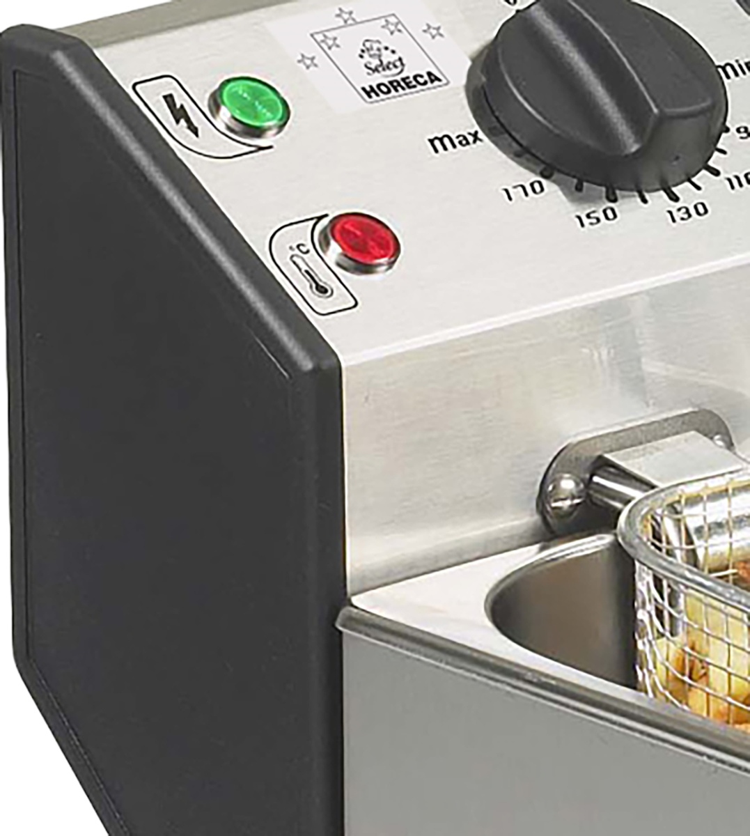 Features: regulation thermostat (0 – 180°C) with precise bulb, safety thermostat, micro-switch, basket, stainless steel lid, pilot lights.