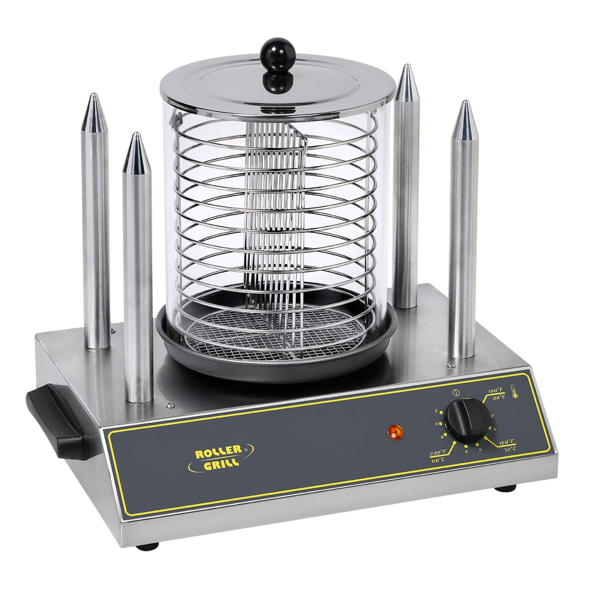 This professional hot dog machine is also fitted out with 4 heating pads to toast the special bun for hot dog or the inside of the baguette.