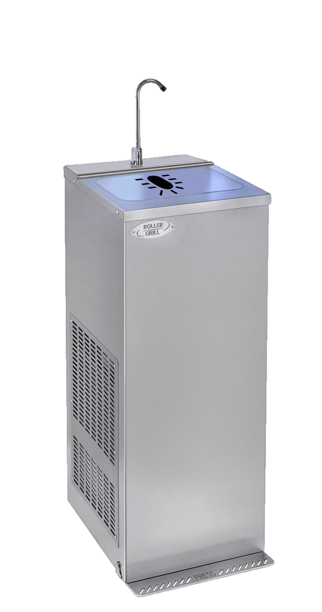 The refrigerated fountain AQUA 35 is a freestanding model equipped with a tap to fill the glasses with fresh water.
