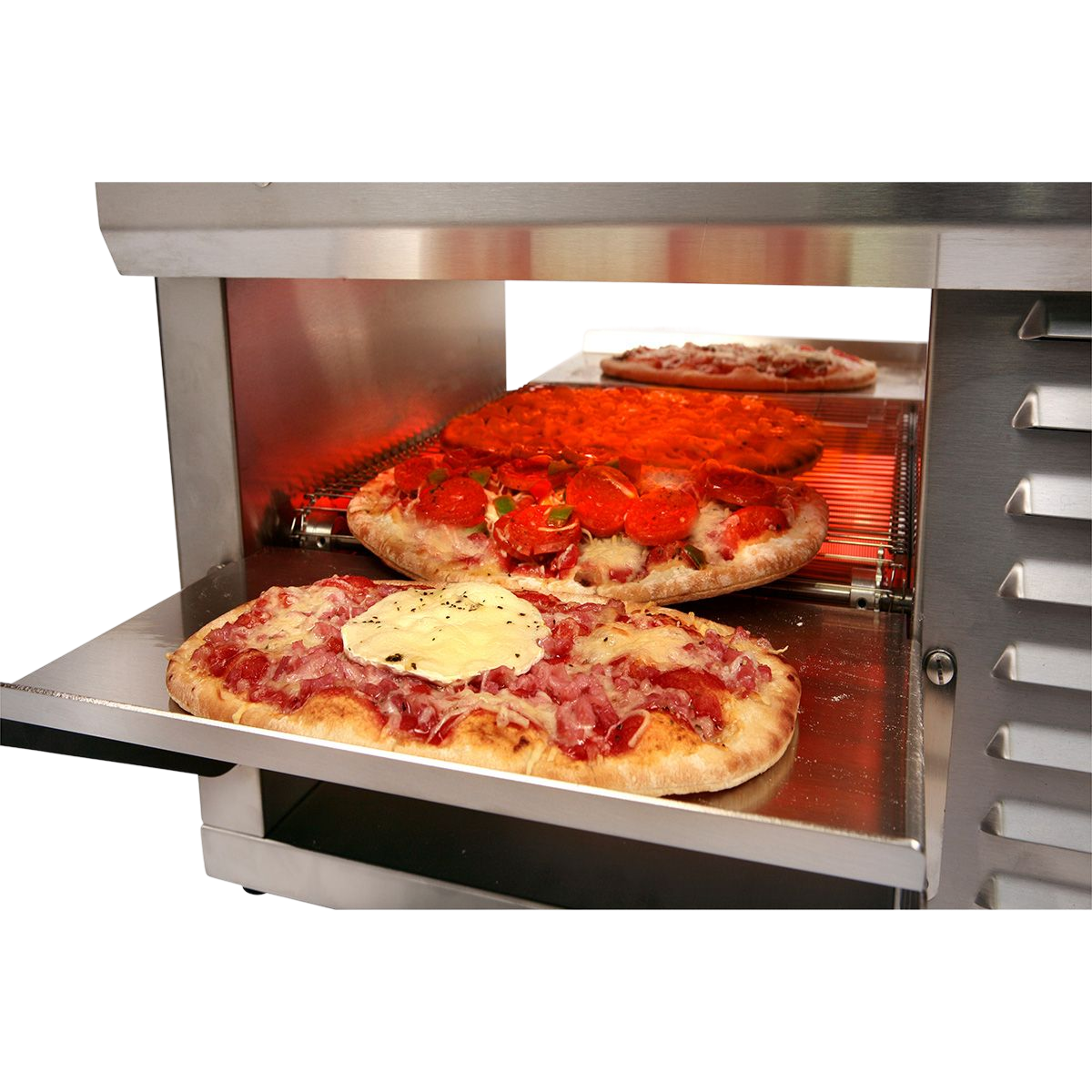 – to cook pizzas or quiches (precooked and fresh garnish) in less than 2 minutes depending on the filling,