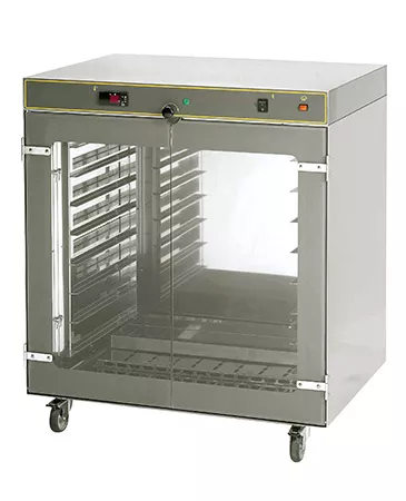 Avec le four à vapeur, la chambre de pousse est le matériel indispensable à la cuisson du pain. L’étuve EP 800 assure une pousse idéale de la pâte à pain.