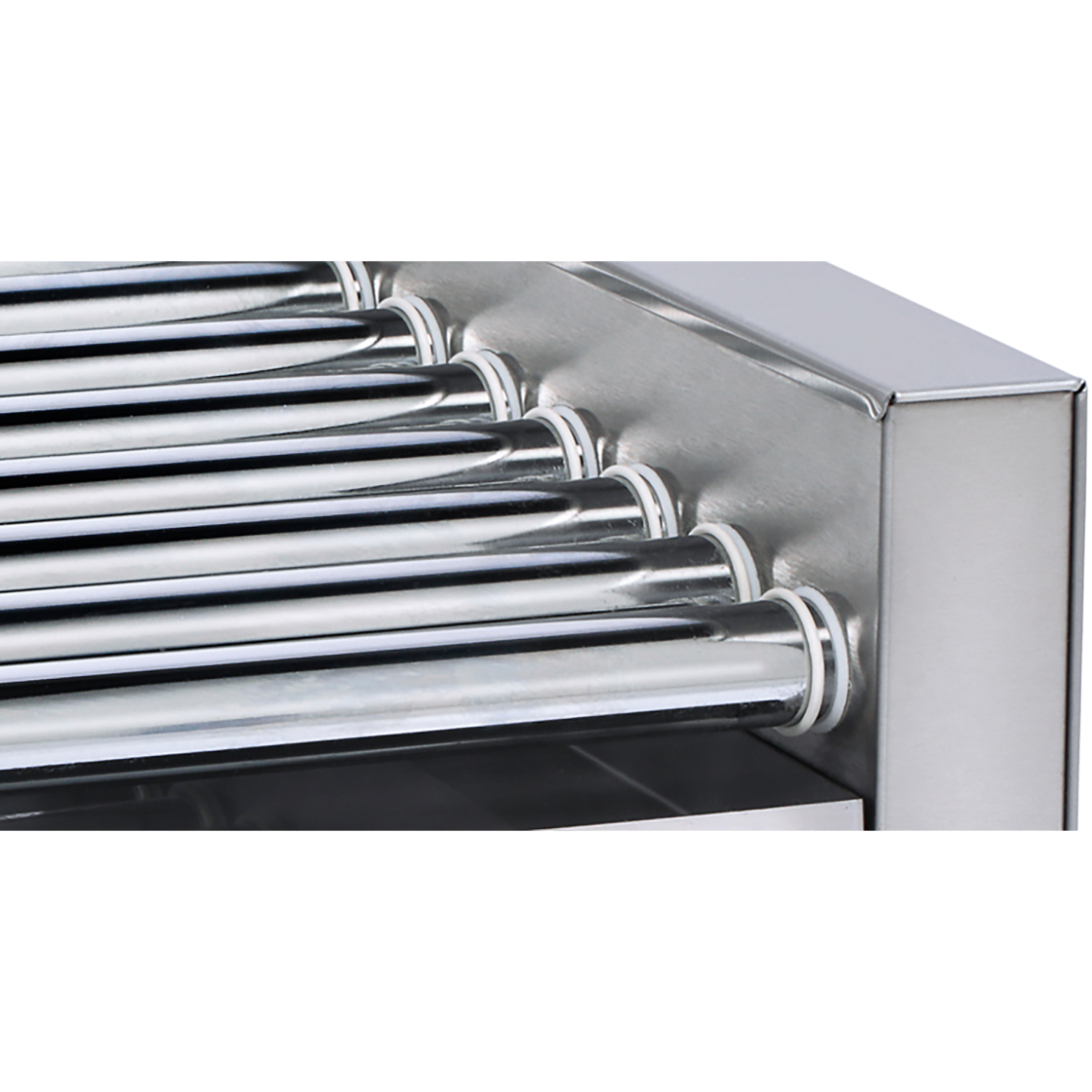 Les rouleaux chromés du chauffe-saucisse facilitent l’entretien et garantissent une grande longévité. Un bac de récupération des graisses est placé sous les rouleaux. Il est totalement amovible et lavable en machine.