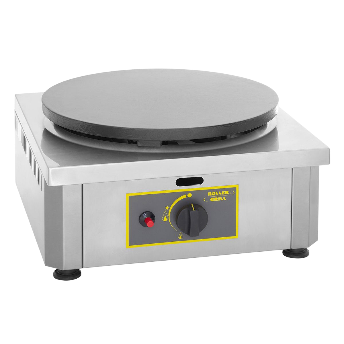 La crêpière professionnelle gaz CSG 400 est équipée d’une plaque en fonte émaillée de 400 mm de diamètre. Le revêtement émaillé de la plaque réduit sensiblement la phase de culottage. Cette longue phase de culottage est normalement indispensable à l’achat, puis elle doit être renouvelée toutes les semaines. Avec la plaque en fonte émaillée Roller Grill, la crêpière professionnelle gaz CSG 400 est opérationnelle dès la 1ère cuisson de crêpe et tout aussi simple d’utilisation.