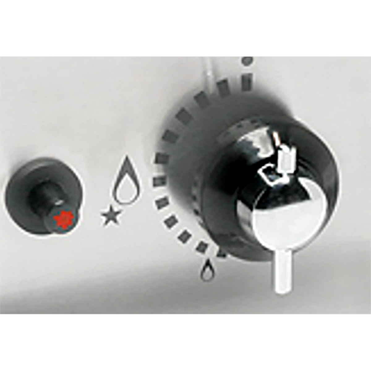 • Les boutons chromes s’accordent avec la poignée anodisée qui peut servir d’accroche-ustensiles.