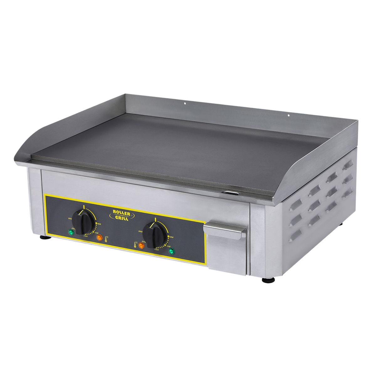 La plaque en acier de la PSR 600 E est d’une épaisseur de 10 mm. La montée en température de cette plancha électrique est de moins de 10 minutes. L’acier décarburé d’épaisseur suffisante saisit parfaitement les produits grâce à un polissage de qualité. Par son aspect très lisse, la plaque de cuisson permet ainsi une bonne cuisson par contact pour un transfert direct de chaleur vers l’aliment à cuire. La plaque acier de 10 mm d’épaisseur est très utilisée en restauration traditionnelle et dans les camions-restaurants.