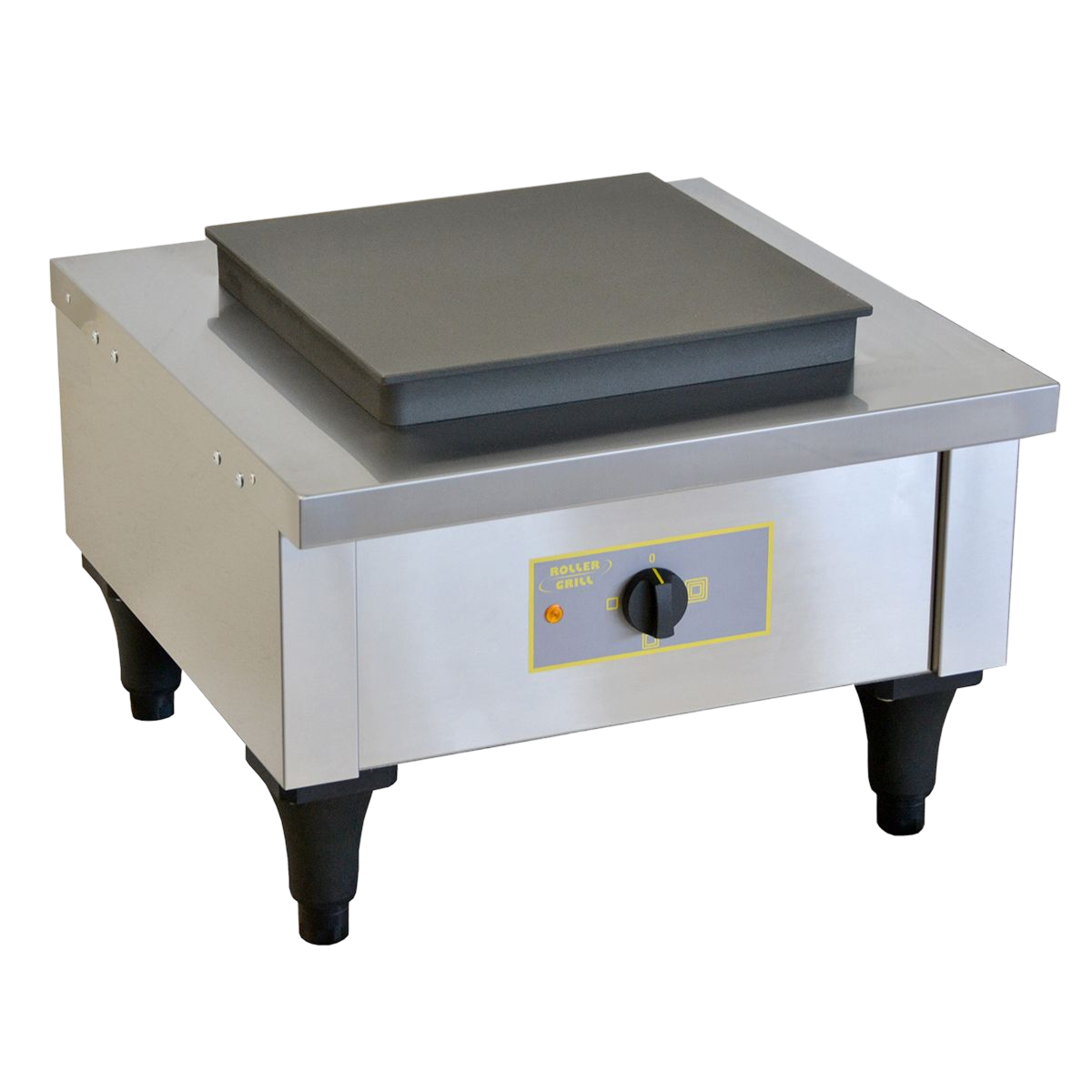 Equipement : commutateur, 4 résistances, plaque fonte 400 x 400 mm, voyant de contrôle, pieds de hauteur 100 mm ( CE / UL-NSF).