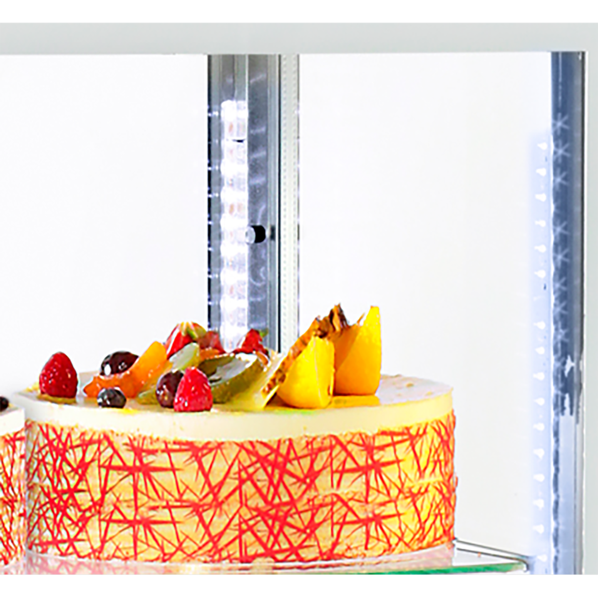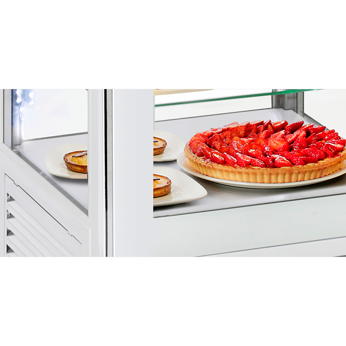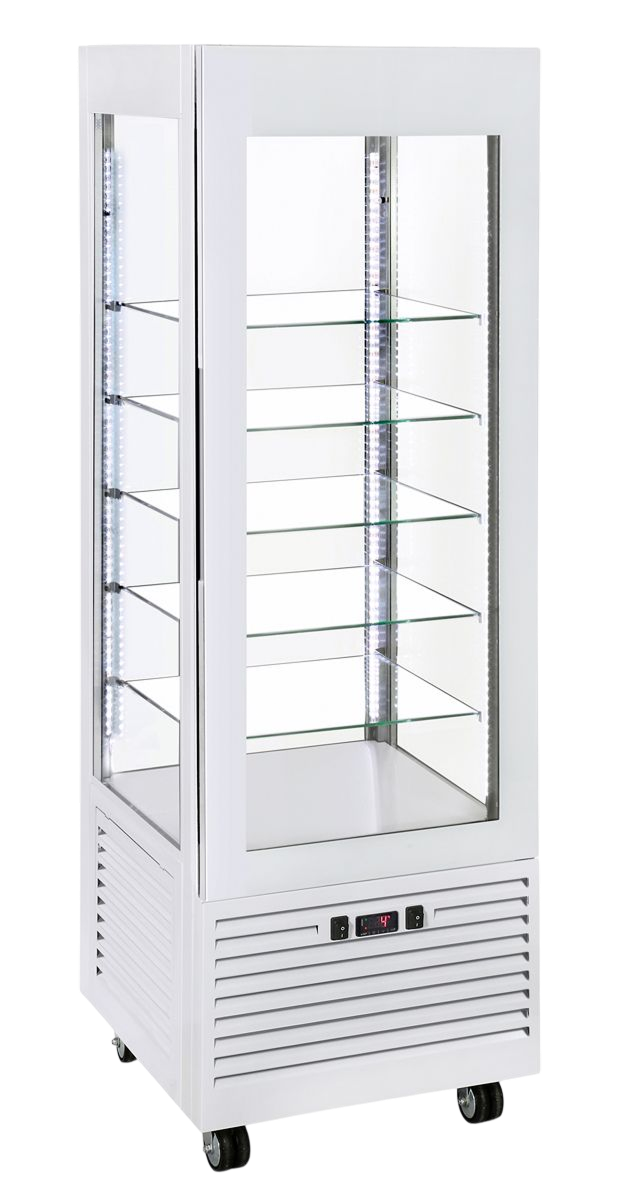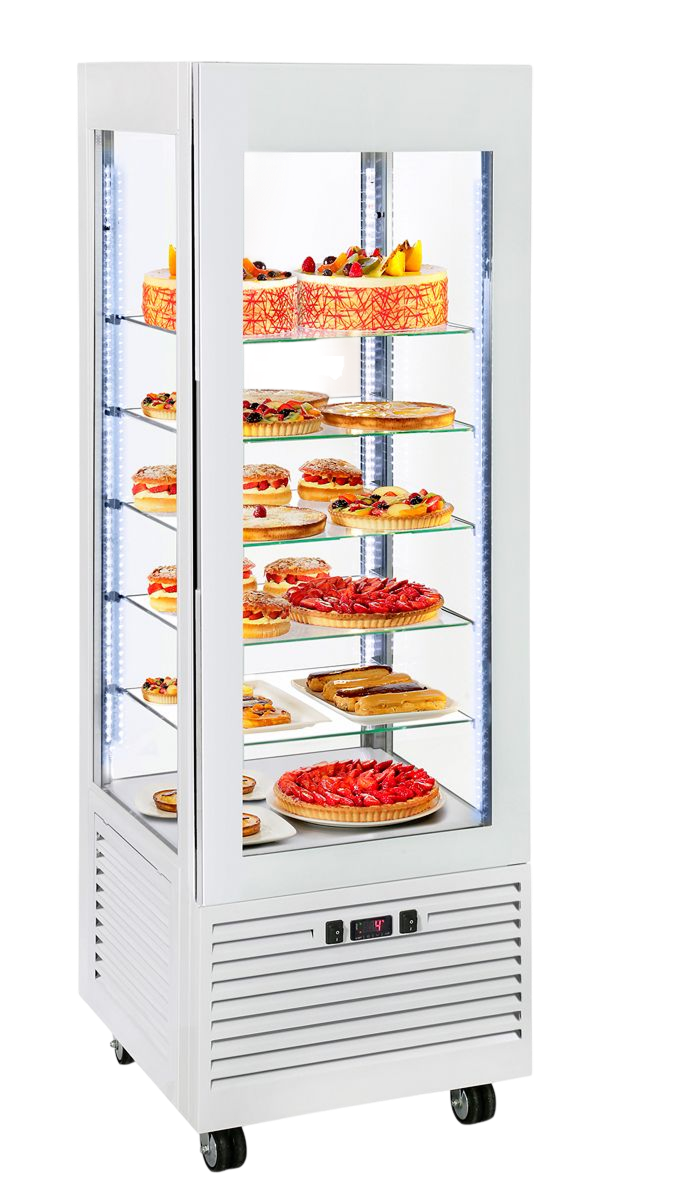 Panoramique et équipée d’un éclairage 4 LED, la vitrine réfrigérée ventilée RD 600 sublime vos pâtisseries, vos tartes et tous vos desserts à base de fruits.