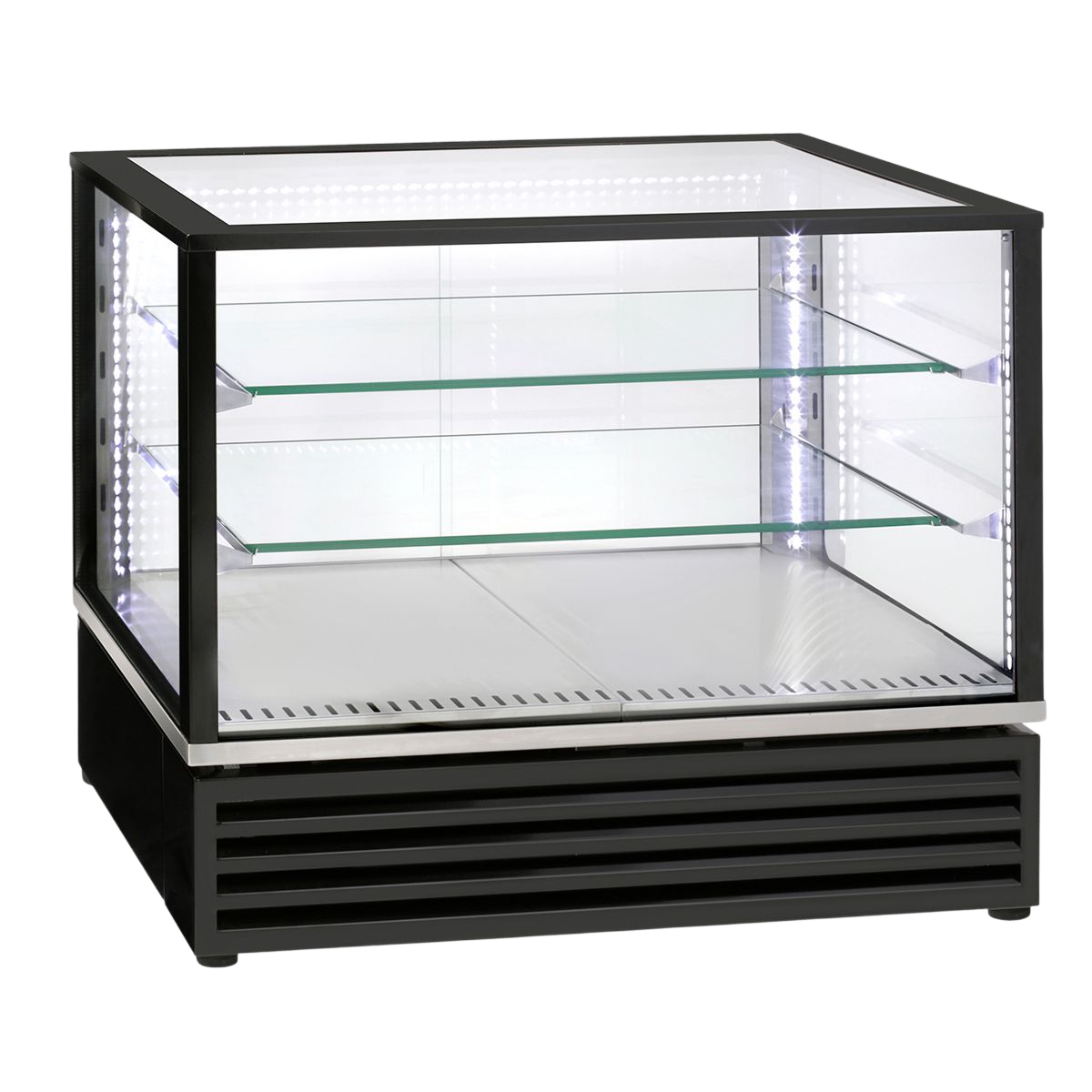 Equipement : régulation par thermostat électronique, 4 rampes LED, portes en verre coulissantes, double vitrage sur toutes les faces, compresseur Tecumseh FRANCE, gaz R290. Vitrine tropicalisée. Livrée sans plat GN. Disponible en 3 couleurs : inox, noire ou blanche.
